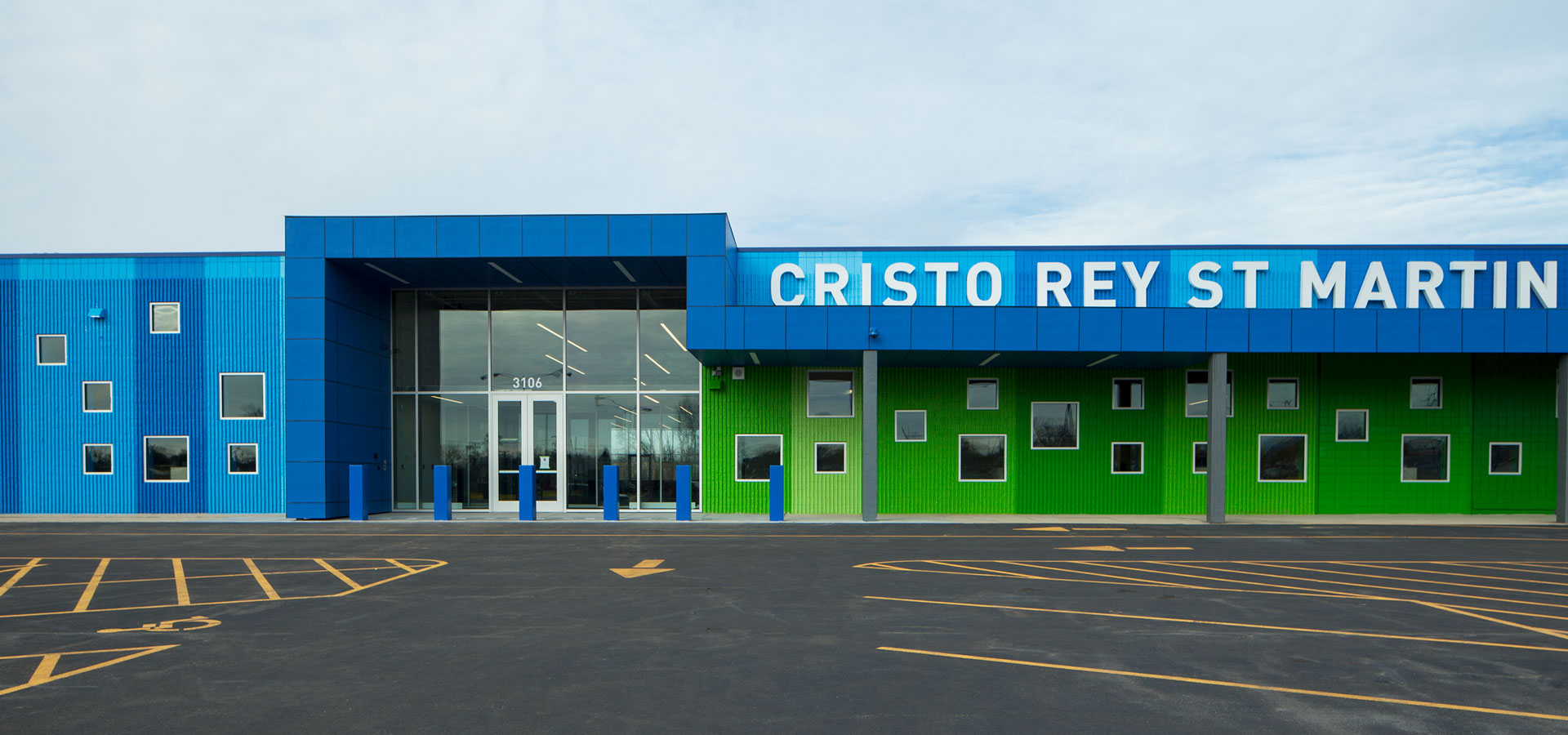 Cristo Rey St. Martin College Prep was honored with the Merit Award in the Renovation and Adaptive Reuse Under $10 Million category by the Chicago Building Congress. The project required the comprehensive transformation of an abandoned big box retail store into a contemporary educational facility serving over 400 students. The former building structure had no identity and no physical or emotional connection to the community. The project team’s challenge was to break down those barriers and develop an innovative design that would inspire the students, faculty, administration and community, while meeting the limited budget.