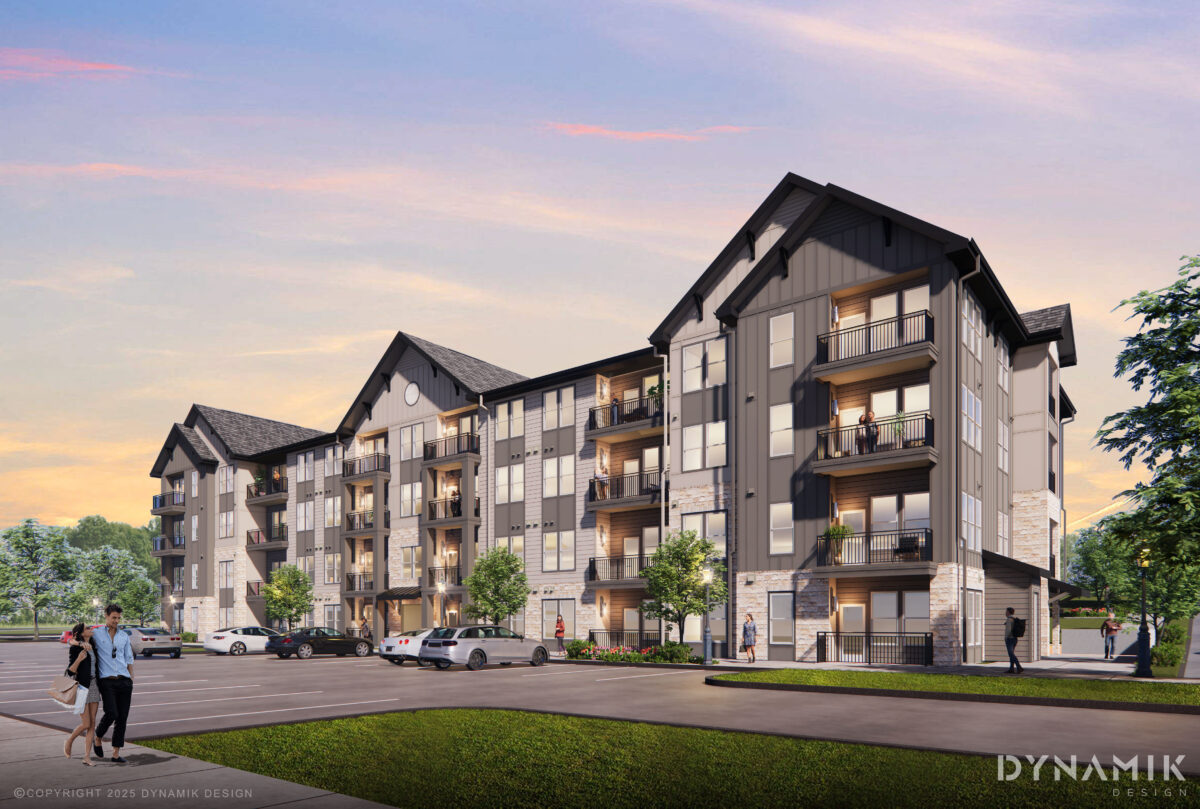 Units will be offered in one- to three-bedroom layouts with high-end finishes including luxury vinyl-tile flooring, quartz countertops, and stainless-steel appliances.