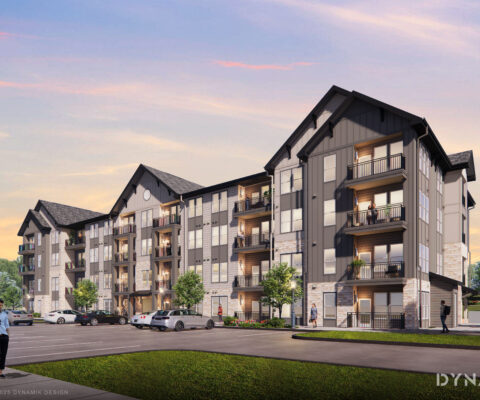 Declan Hermitage is a 315-unit apartment community under construction in Nashville’s Hermitage neighborhood. Positioned on a 15-acre site, the development will integrate six garden-style apartment buildings with three and four stories. The buildings’ exteriors will feature Hardie siding and stone veneer with shingled roofs, Ply Gem windows, and treated wood deck balconies with aluminum railings.
