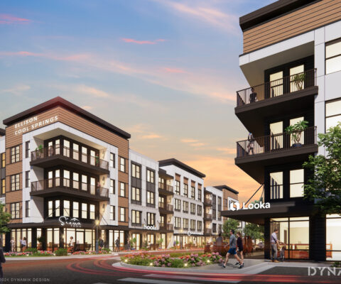 Construction is underway at Ellison Cool Springs, a mixed-use community in Franklin, Tennessee, that offers 332 apartment units and 15 ground-floor commercial units. Positioned on a 34-acre site, the development features three four-story wood frame buildings along with two two-story precast parking decks and five stand-alone six-bay garages.