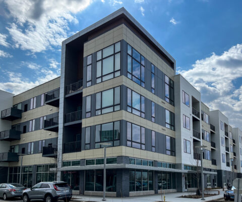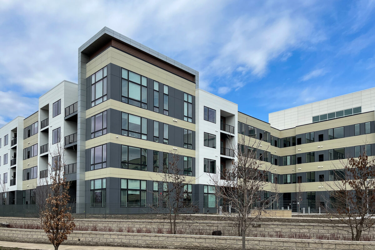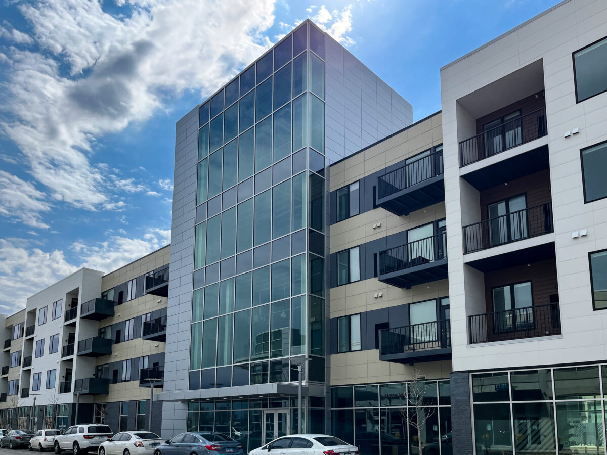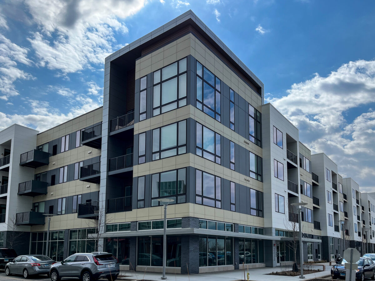 Domain CityGate is a 285-unit mixed-use multi-family development in Naperville, Illinois’, CityGate Centre. The development integrates four stories of wood-frame construction wrapped around a precast parking garage with 430 spaces. Atop the parking garage is a 38,000-square-foot rooftop event center shell. The building’s exterior features an attractive mix of brick, Hardie and Nichiha panel siding, metal panels, and glass.