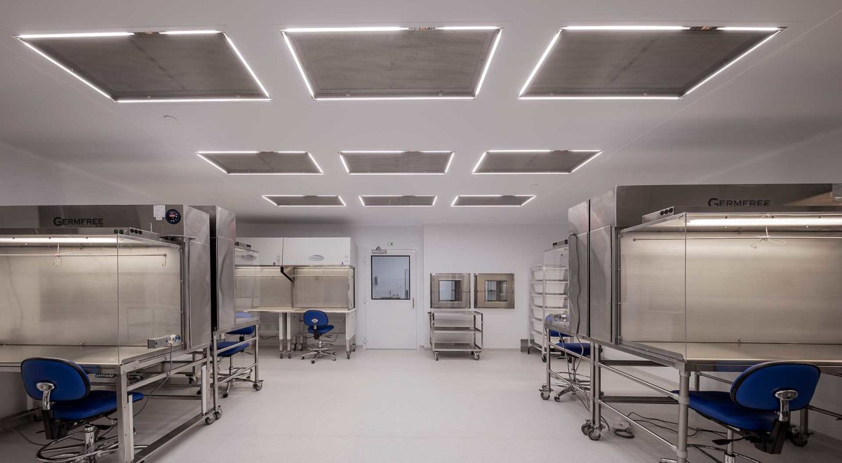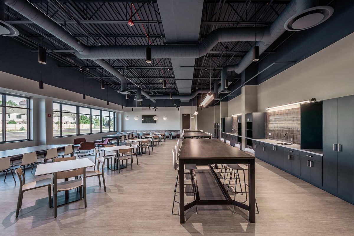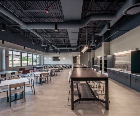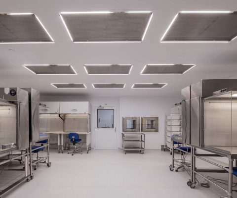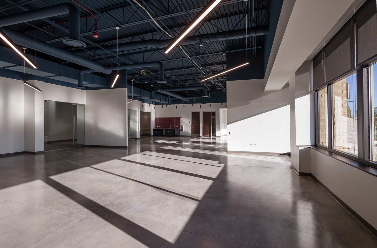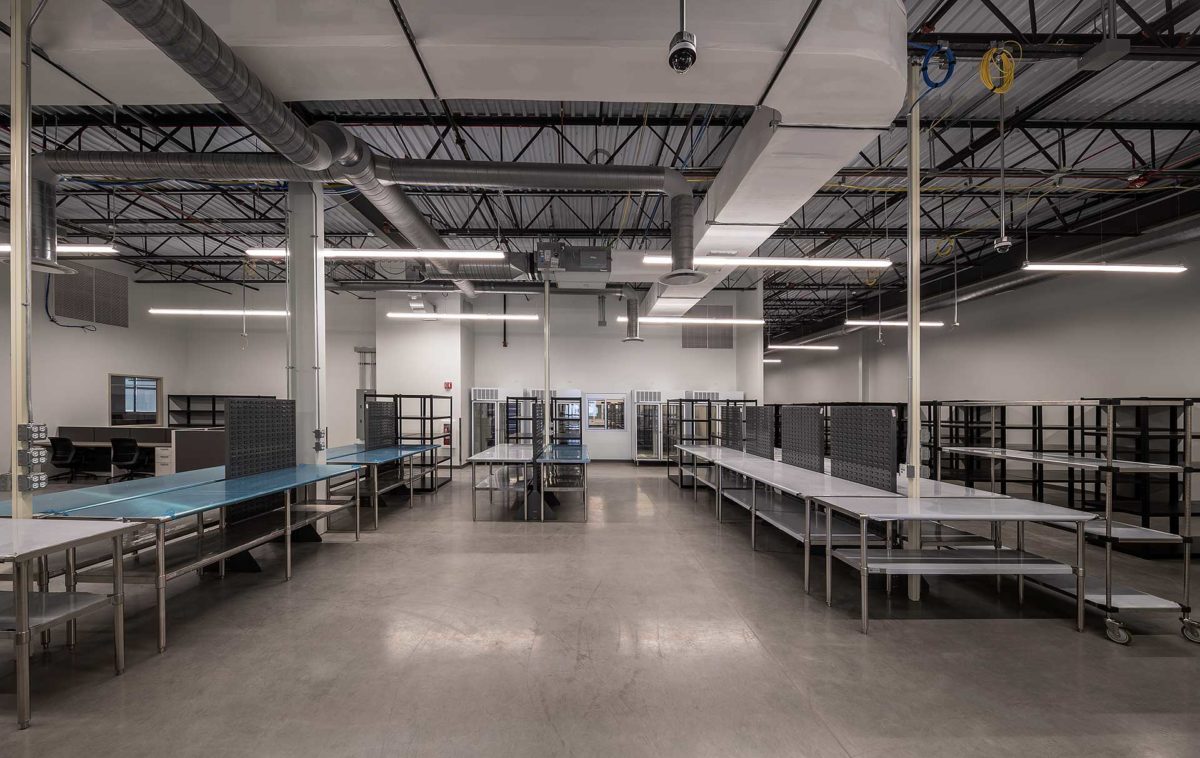 Inside, the building features office, conference room and collaboration space for employees, a treatment area for patients receiving infusions, two clean rooms, a showroom, multiple pharmacy prep areas and warehouse-style storage.