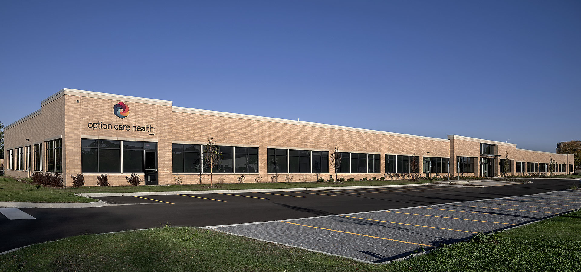 McShane Construction Company provided the construction services for Option Care, a 50,000-square-foot, build-to-suit facility in Itasca, Illinois for developer, Quadrangle Development Company. The single-story building holds office, warehouse and medical treatment spaces for Option Care Health, one of the nation’s leading providers of home infusions.