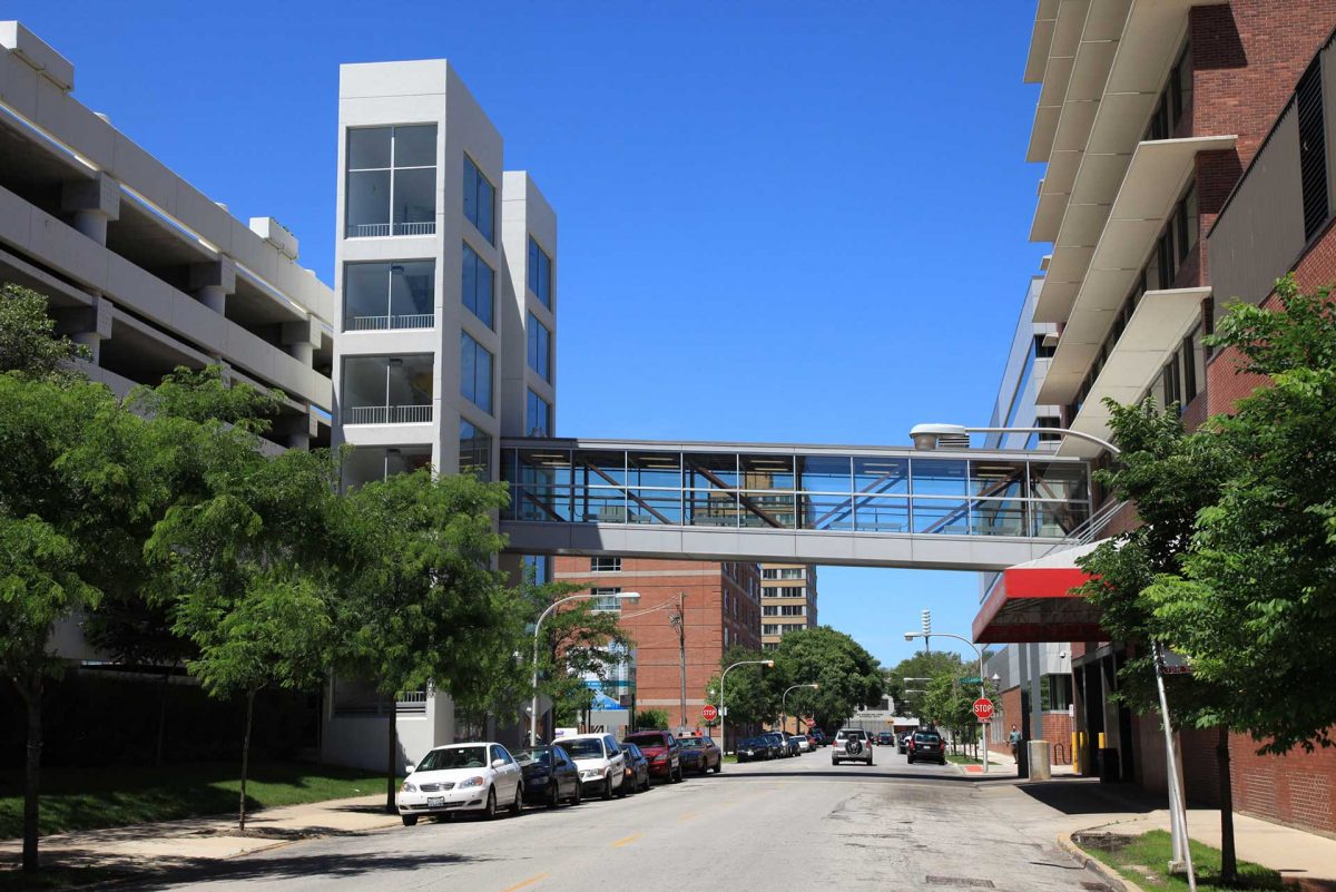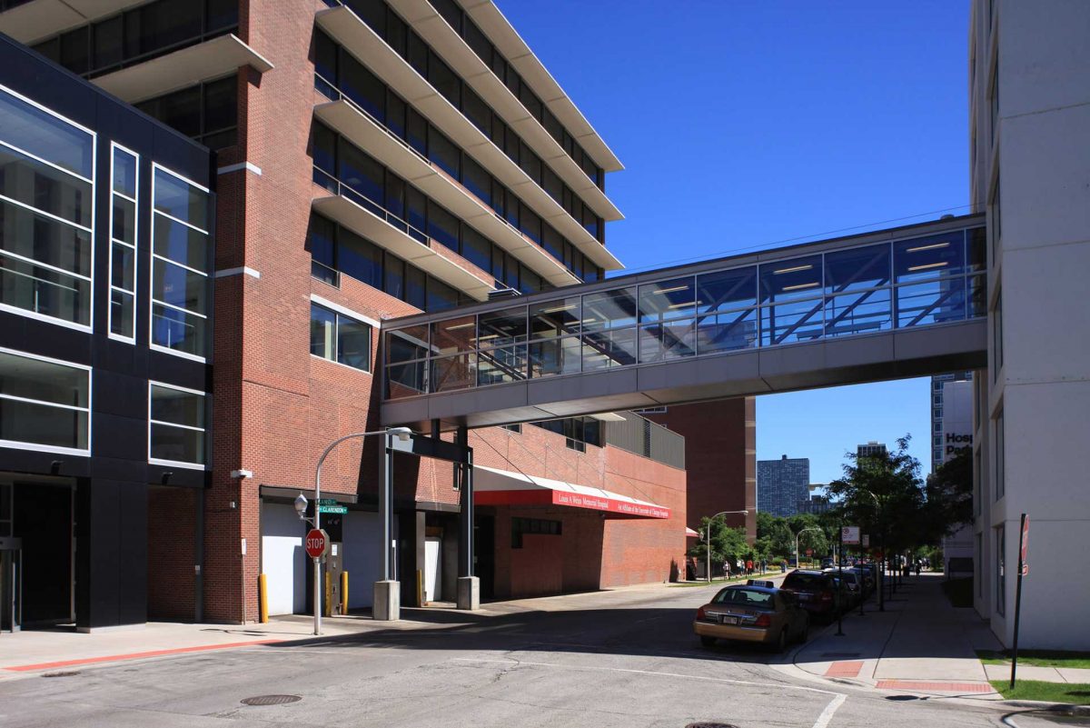 McShane completed all common interior spaces including the installation of five elevators as well as the interior improvements for the Walgreens situated on the first floor of the building. The firm also expanded the parking structure by adding a sixth floor with 184 additional spaces for patients and visitors. In addition, McShane added a pedestrian bridge connecting the third floor of the hospital to the fourth level of the garage.