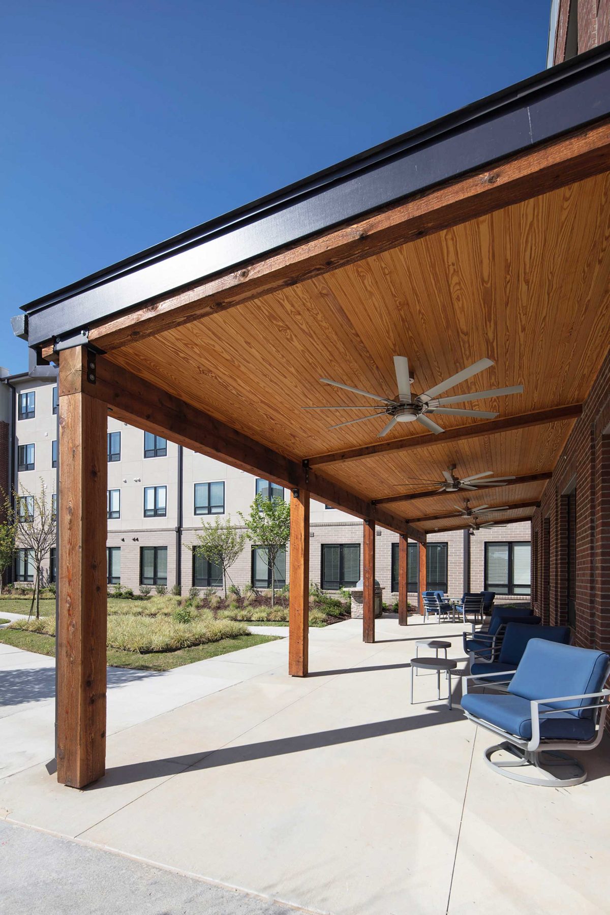 The four-story multi-family development features wood frame construction and includes approximately 4,000 square feet of amenity space encompassing property management, resident services, a fitness center, a computer center, sitting rooms and several outdoor seating areas.