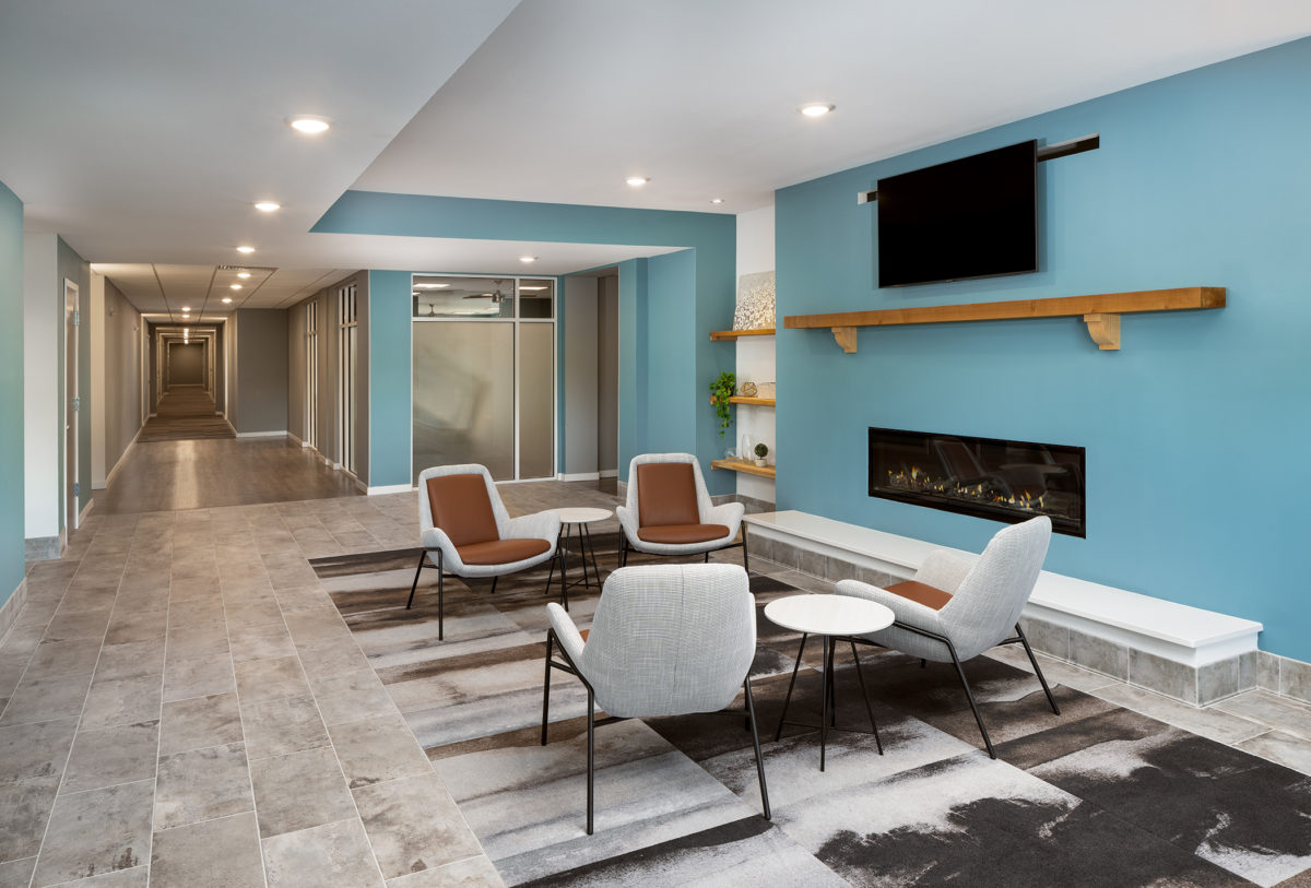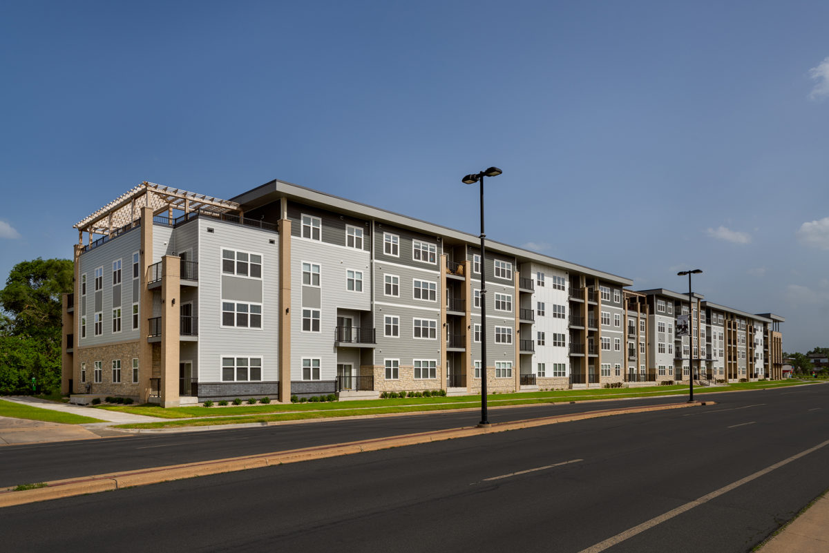 Building amenities include a club room and kitchen, fitness room, dog wash and a fourth-floor common room with three rooftop decks. Additionally, tenants have access to surface parking and electric vehicle charging stations.