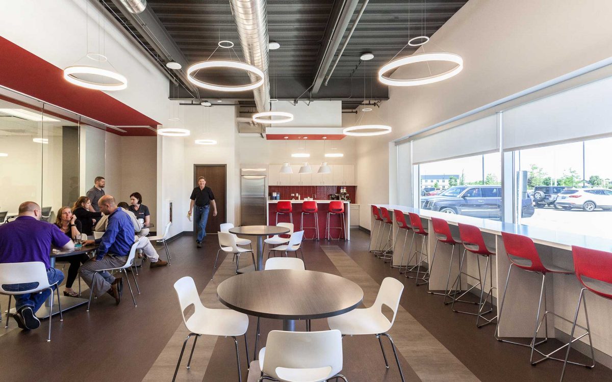 The precast concrete facility boasts a contemporary exterior design with storefront windows and an attractive steel canopy at the main entrance. It also accommodates parking for 14 trailers and 148 vehicles.