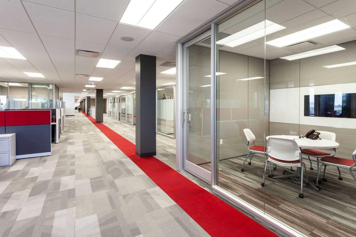 Constructed on a 10.6-acre parcel, the build-to-suit features a 31,000-square-foot, two-story corporate office component with an elegant atrium lobby, open and private offices, conference rooms and an employee break room. The remainder of the building was outfitted to support the firm’s warehouse and manufacturing requirements with a 32′ clear height, five dock doors, seven drive-in doors and an ESFR sprinkler system.