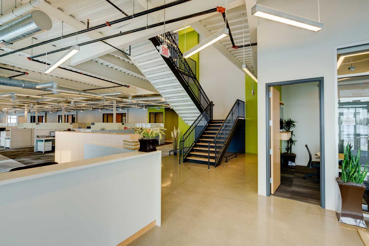 The facility also features a production and warehouse area totaling 83,200 square feet with a 28′ clear height, two drive-in doors and six dock-high doors. Sitework completed by McShane included landscaping, sidewalks and parking for 199 vehicles.