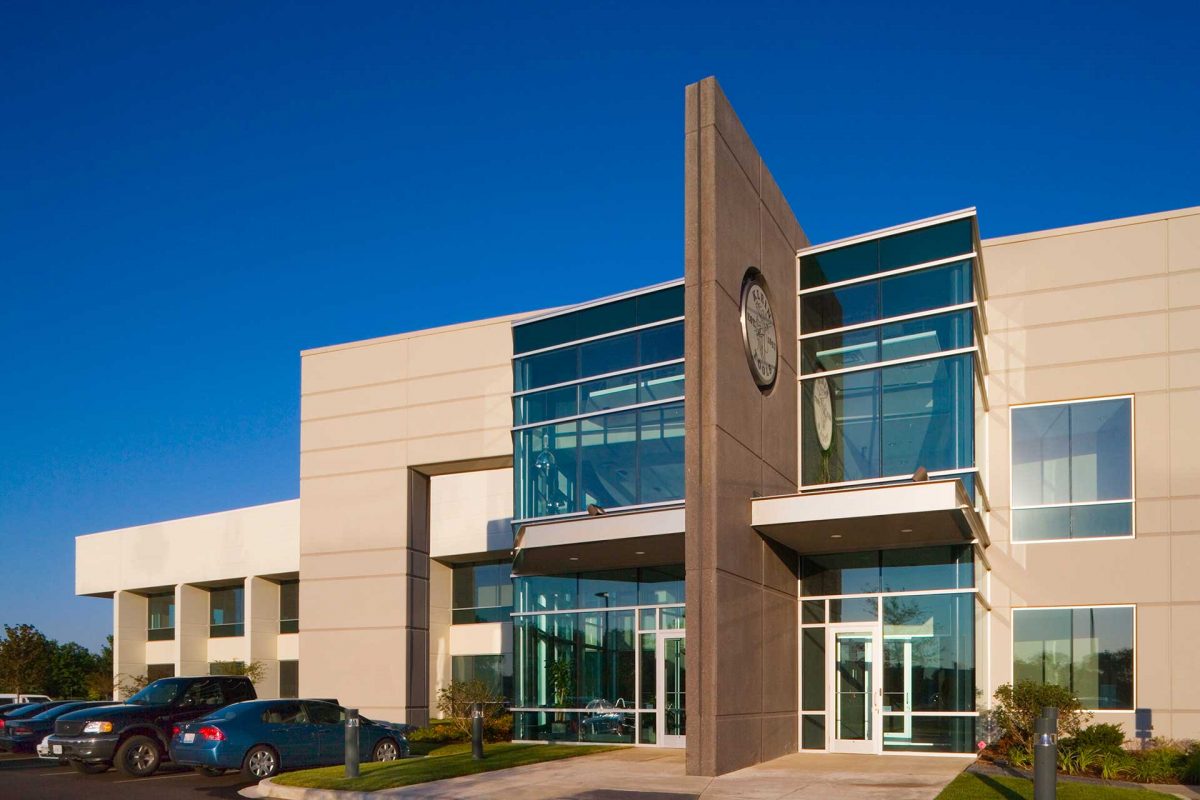 The attractively designed facility was constructed of structural precast panels and features a full-height glass curtainwall at the main entrance to the facility.