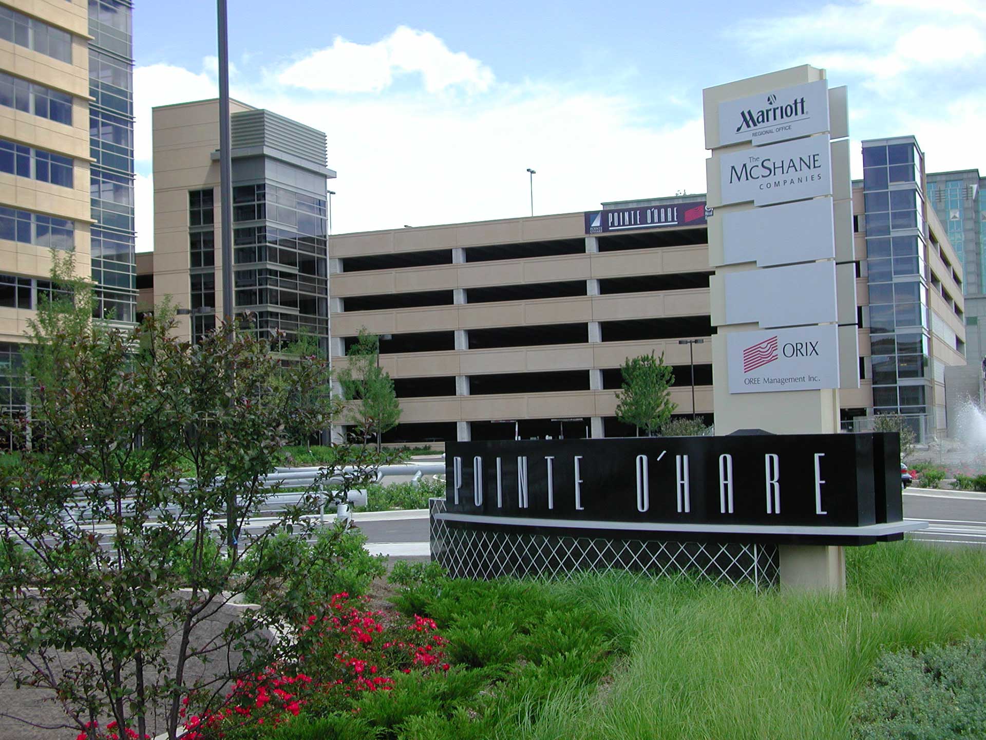 The Pointe O’Hare parking structure is a six-level attached parking garage with 992 parking spaces serving the 11-story, 263,000-square-foot Pointe O’Hare office development.
