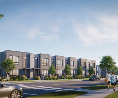 Amenities will include large green roof amenity areas on the podium buildings, fitness centers, 5th floor club rooms and common balconies, co-working office spaces, conference rooms, and heated vehicle and bike parking. Additionally, the site will offer a fenced dog run, community gardens, and access to both the lake and riverfront.