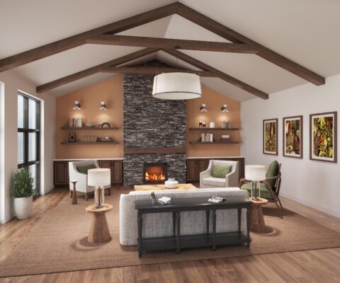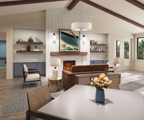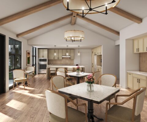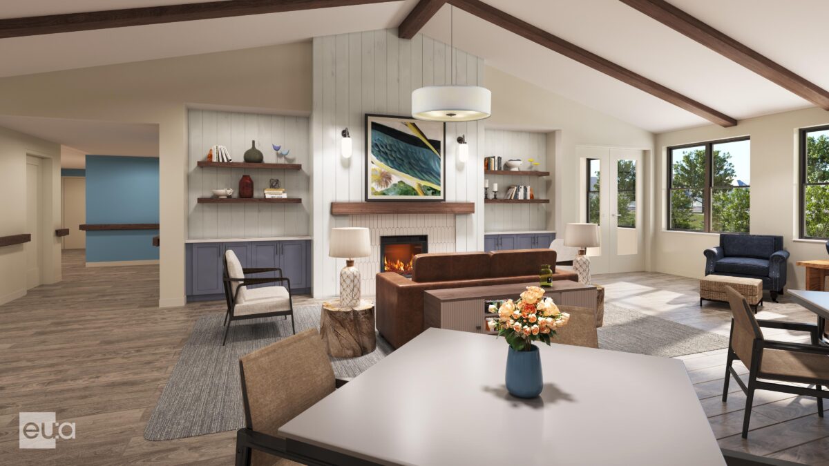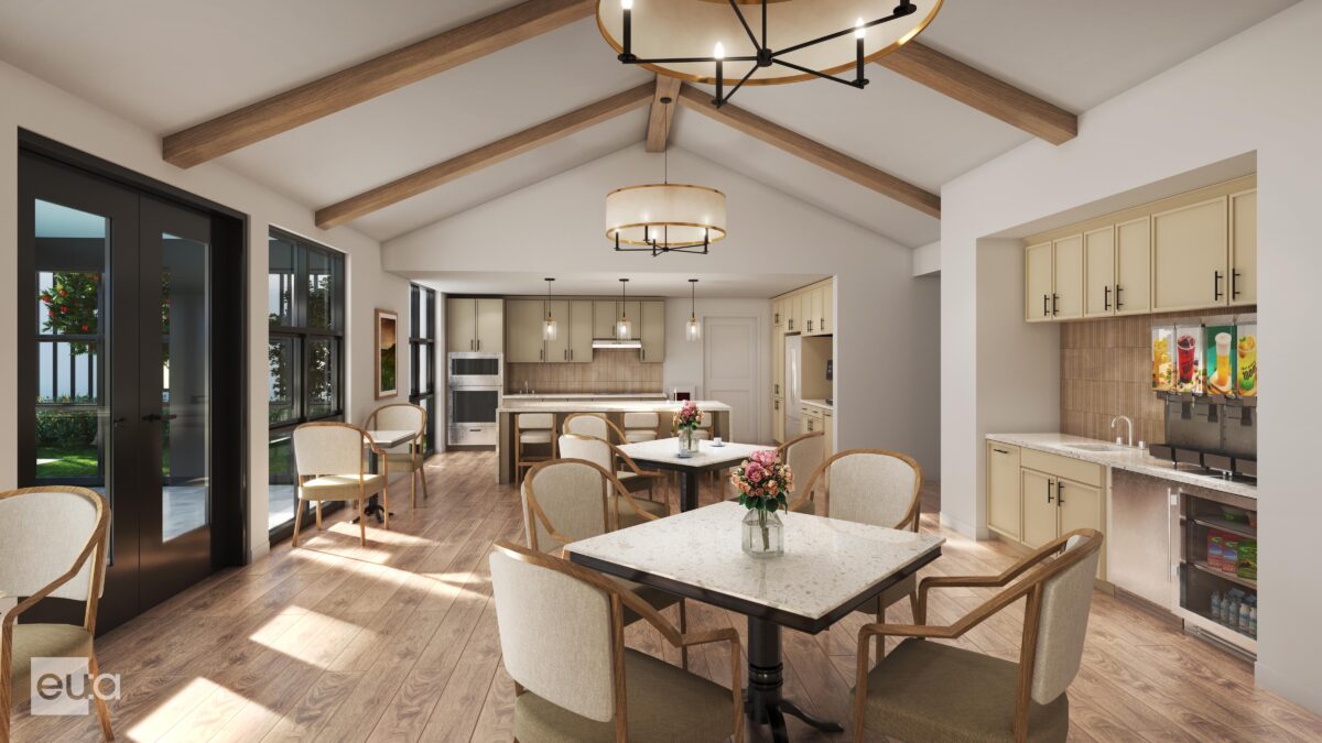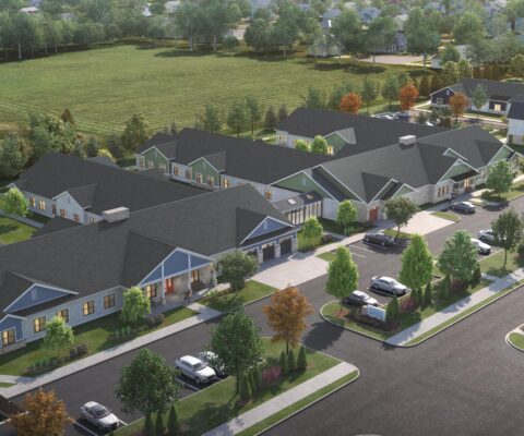 In addition to dining rooms, kitchens, community rooms, and sunrooms, residents will have access to a fitness area, spa, and salon. Outside, residents will be able to enjoy a community garden, walking paths, putting greens, bocce ball courts, and extensive courtyard amenities.