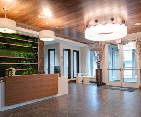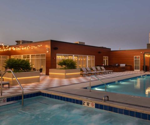 The residence includes a fully equipped indoor amenity space located on the seventh floor featuring a luxurious swimming pool, hot tub, fitness center, yoga studio, men and women’s locker rooms with saunas, catering kitchen and two large event spaces for entertaining. Directly outside is the property’s outdoor rooftop kitchen and grill area, bocce ball court and seating areas for relaxing and gathering. Additional amenities located on the first floor include a club room, market, coffee bar, billiards and game room, theater room, nail and hair salon, conference center and a pet washing station.