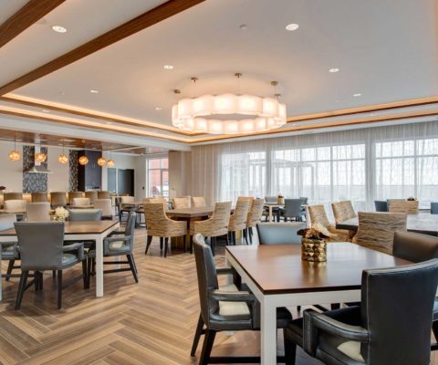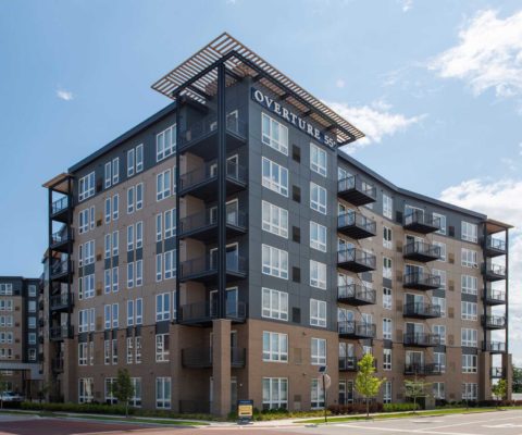 Overture Yorktown is a seven-story luxury active senior residence featuring 175 apartment units constructed around a 234-space six-story parking garage. Each unit incorporates an open kitchen with a prep island, spacious bathrooms, walk-in closets, full-size washers and dryers and a private balcony or patio.