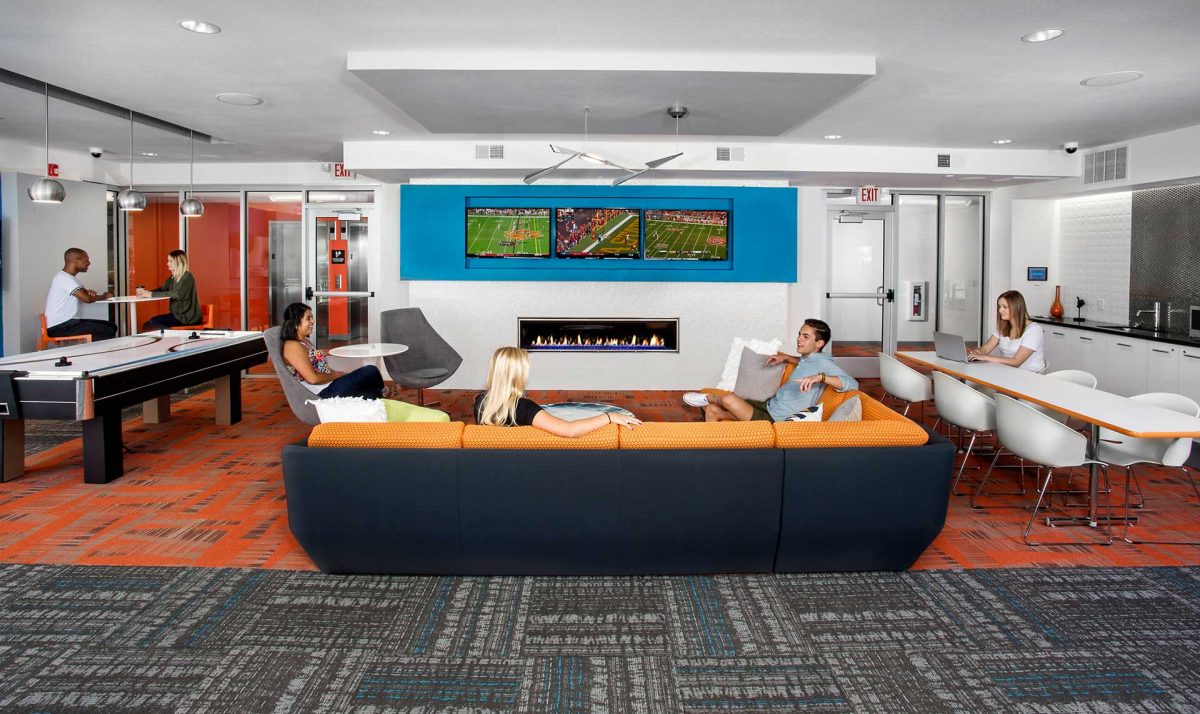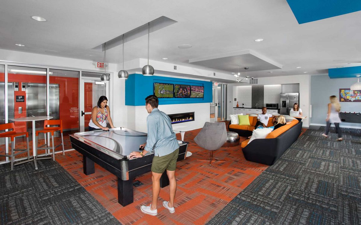 The new seven-story, 83-unit student housing residence is located near Iowa State University in Ames, Iowa. Residences feature high-end finishes and in-unit washers and dryers.