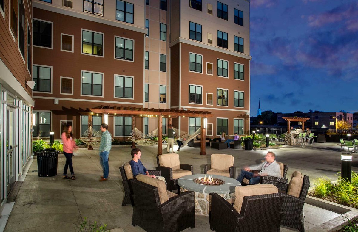 Common area amenities include a computer lounge, bike storage, an outdoor courtyard with gathering areas and a fitness center.