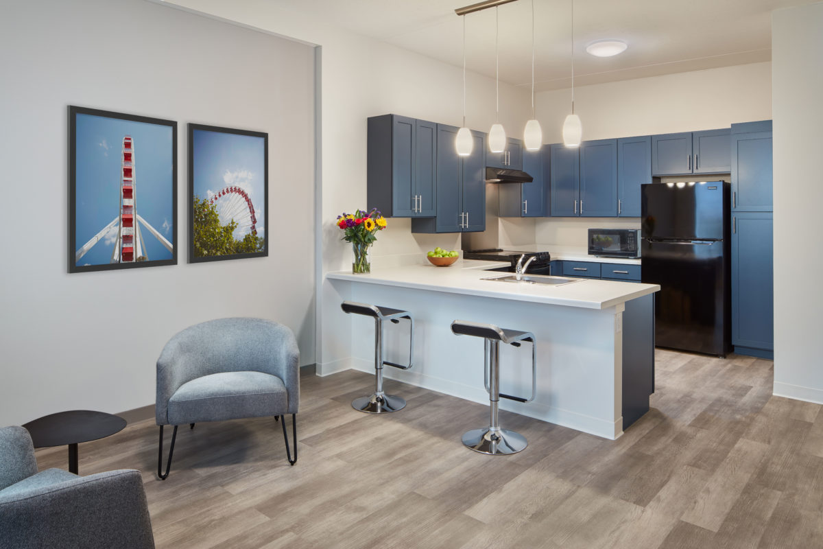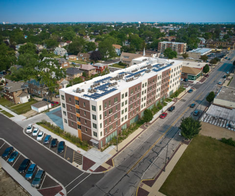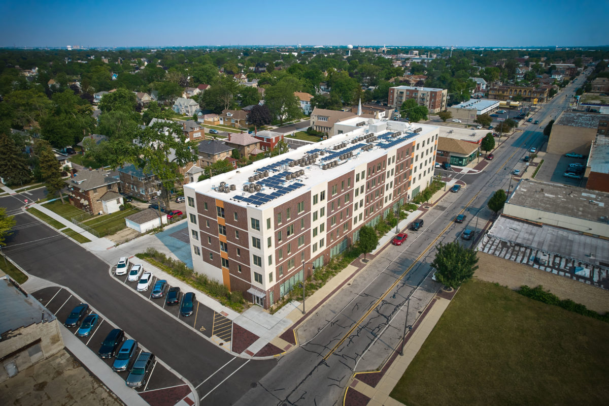 Designed to achieve National Green Building Standard’s Bronze Level and receive ComEd’s Energy Efficiency Grant for affordable housing, the building incorporates sustainable elements including a high-performance HVAC system, windows with a low U-factor, efficient insulation and high-performance light fixtures with LED lighting.