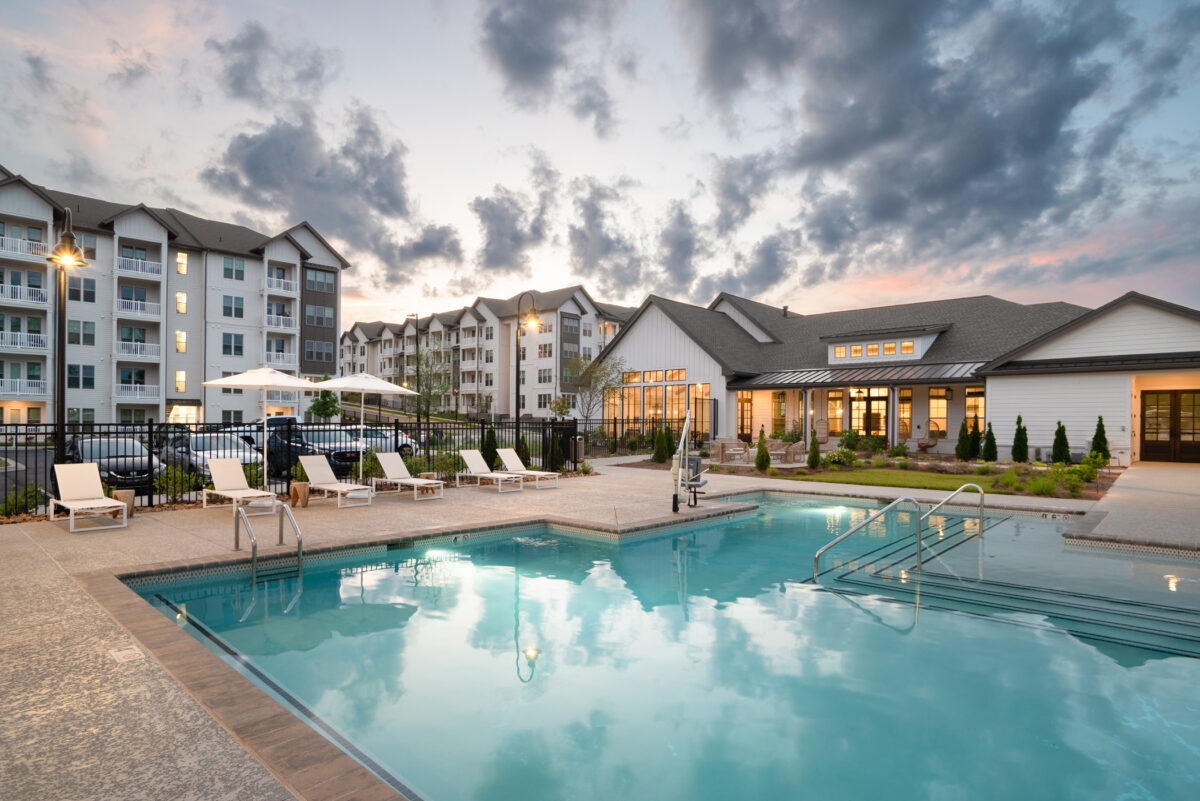 The Kendry is a 300-unit multi-family development in Charlotte, North Carolina. The development integrates three garden-style apartment buildings and a central clubhouse on a 28-acre site. Residents have access to nearly 10,000 square feet of amenity space, including a resort-style outdoor pool, two courtyards with firepits, a dog park, a fitness center, a craft and game room, and a Zoom room.