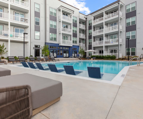 Units are offered in one- to three-bedroom open-concept floor plans and boast professional-grade kitchens, granite countertops throughout, luxury vinyl tile flooring and private balconies or patios. Select units are available in a two-story townhome style with a loft bedroom and bathroom.