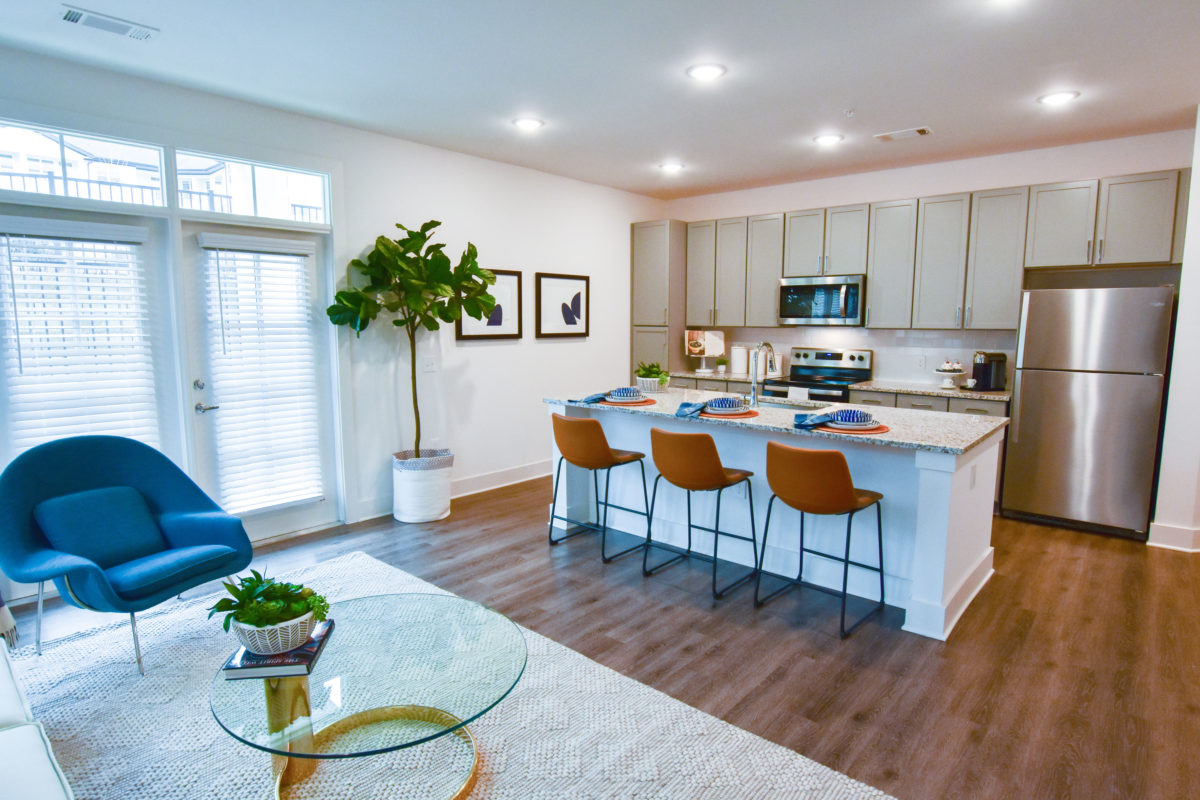 The apartments are offered in one-, two- and three-bedroom configurations and feature granite countertops and upgraded appliances in the kitchen. Residents can also enjoy balconies or ground floor patios off of their units.